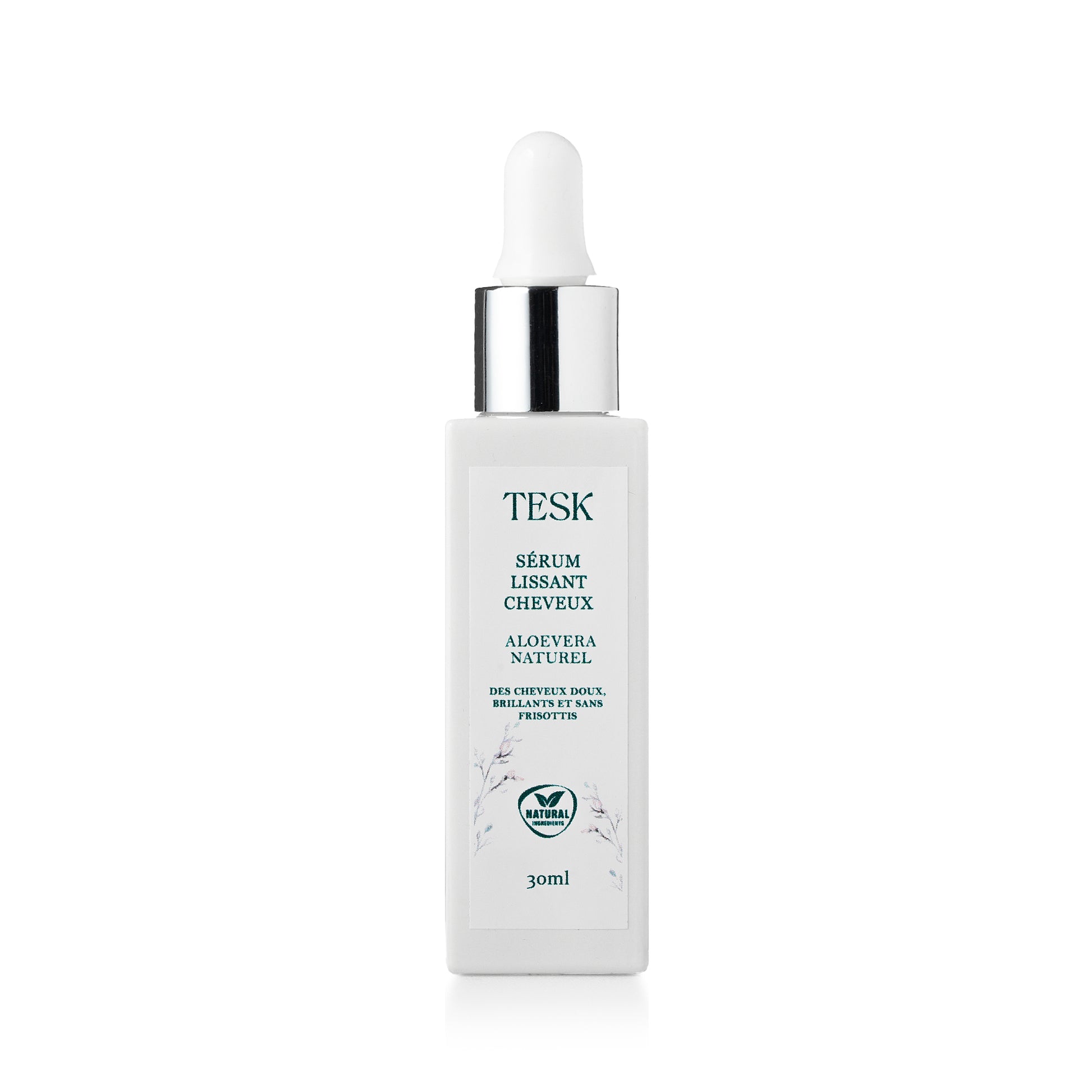 Le sérum réparateur TESK à l’Aloe Vera est enrichi en gel pur d’Aloe Vera et en huile biologique précieuse de noix d’Argan. C’est un soin idéal pour lisser, nourrir et réparer vos cheveux en profondeur. L’huile d’Argan et l’Aloe Vera agissent ensemble pour hydrater intensément, adoucir la fibre capillaire et protéger les cheveux des agressions extérieures telles que la chaleur, la pollution ou les colorations répétées.